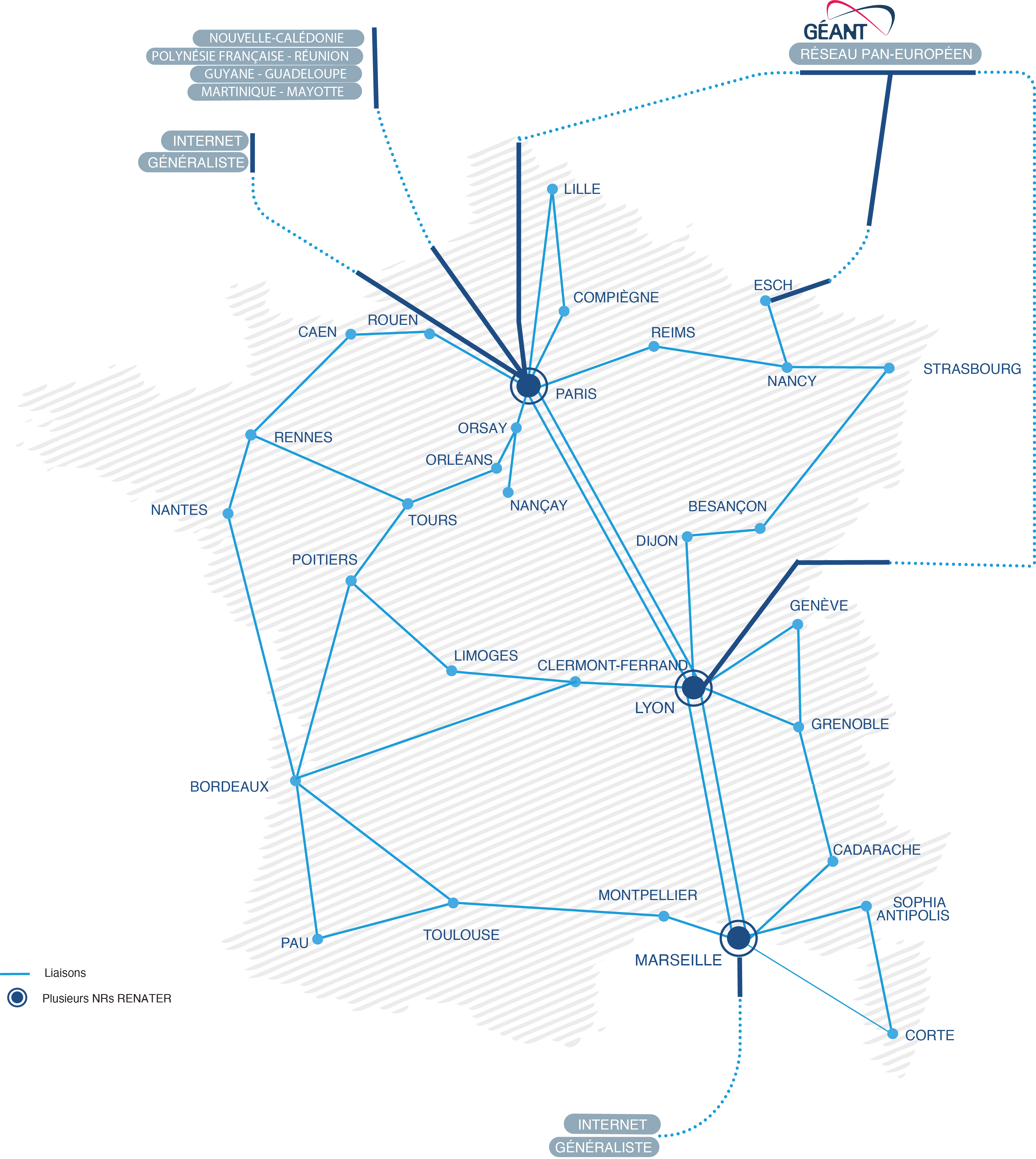 Les utilisateurs du réseau Lothaire accèdent à Internet via le réseau Renater (Réseau National de télécommunications pour la Technologie, l'Enseignement et la Recherche).